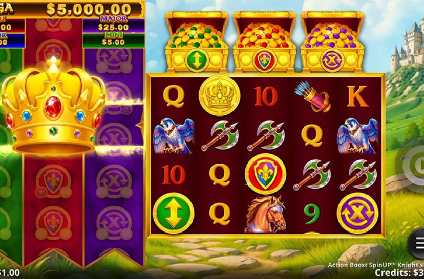 “Action Boost SpinUP Knight's Ascension” de Games Global es una emocionante tragaperras ambientada en la Edad Media. Acompaña a un valiente caballero en su ascenso mientras desbloquea funciones especiales a lo largo de la aventura. Sus mecánicas progresivas y su ambientación épica convierten cada giro en parte de una misión heroica.