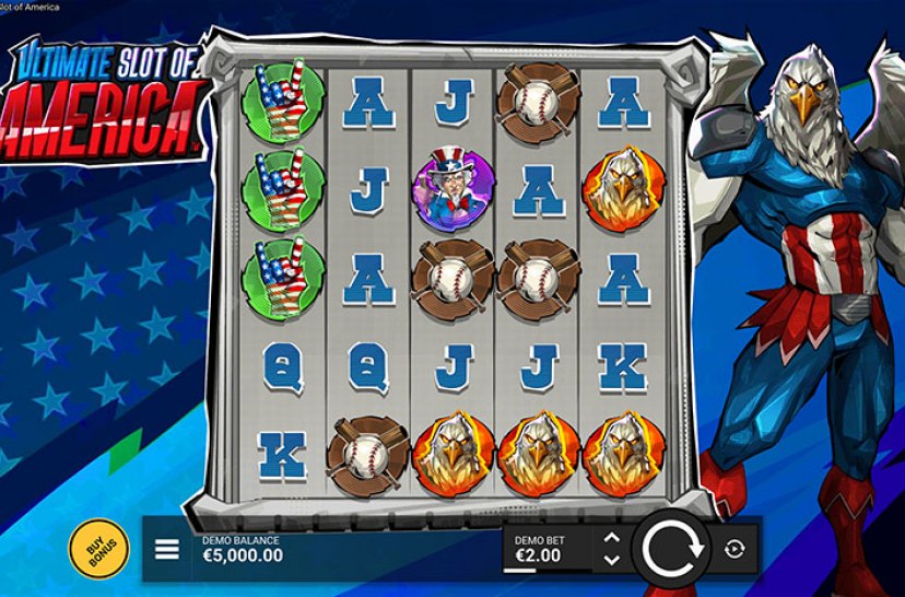 ¿Tienes lo que hace falta para defender la libertad y la fortuna? Da un paso al frente y abraza el rojo, blanco y azul en esta tragaperras de 5×5 con líneas de pago, donde cada giro es un golpe hacia la victoria. "Ultimate Slot of America" ofrece acción de puro espíritu estrellado.