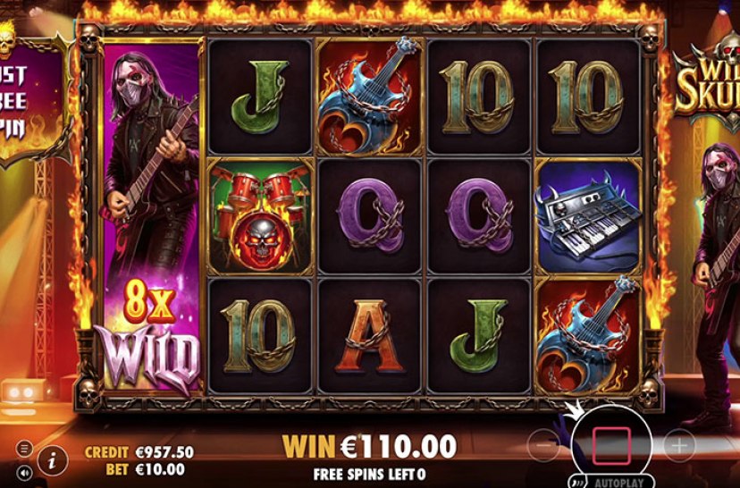 “Wild Skullz” de Pragmatic Play es una potente tragaperras de estética rock con wilds expansivos y multiplicadores de hasta 512x. Si un wild expandido forma parte de una combinación ganadora, su multiplicador se aplica al total. Tres scatters con calaveras activan el bono, donde un wild especial recorre los carretes aumentando la tensión.