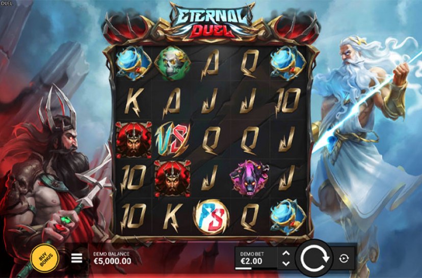 “Eternal Duel” de Relax Gaming es una épica tragaperras inspirada en el enfrentamiento entre dos poderosos hermanos. Nacidos de sangre divina, su batalla sacude los reinos mientras relámpagos y oscuridad chocan. Su atmósfera mítica y su estética intensa convierten cada giro en parte de un duelo legendario.