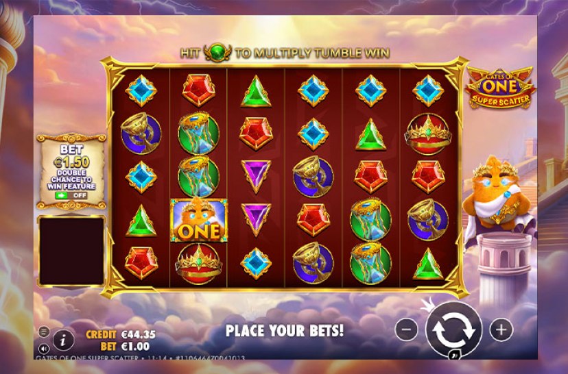 Zeus desata su poder en esta edición exclusiva creada para OneCasino. Inspirado en "Gates of Olympus Super Scatter", este lanzamiento eleva la acción con detalles únicos y una energía renovada. Combina 8–30 símbolos, activa multiplicadores acumulativos hasta 500x y entra en Free Spins con Super Scatters capaces de otorgar hasta 50.000x tu apuesta. ¡Prepárate para vivir el juego del año!
