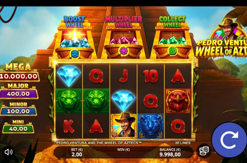 Elige tu camino en "Pedro Ventura and the Wheel of Aztecs", donde tres templos conducen a jackpots dorados. Las funciones BOOST, COLLECT y MULTIPLIER aumentan el valor de las monedas en el bonus.