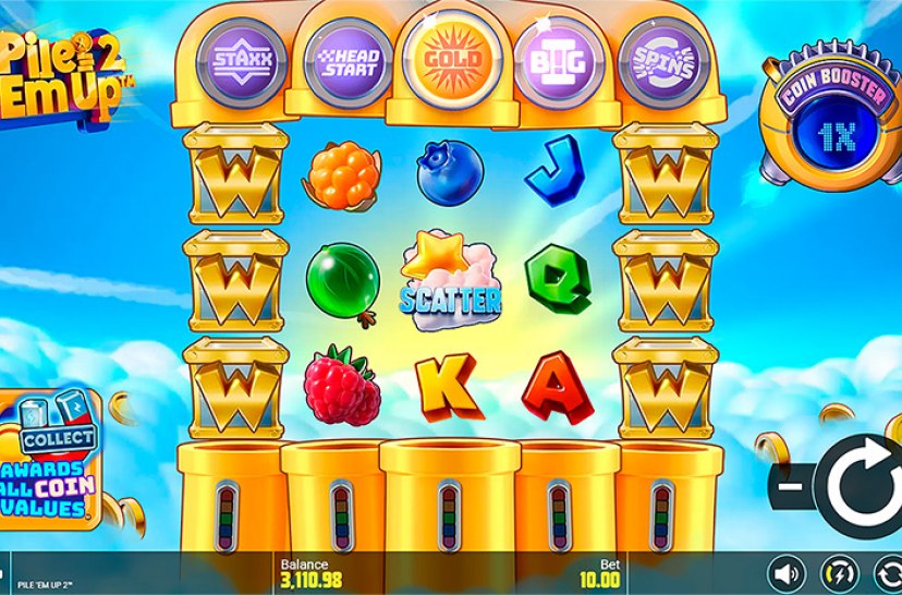 Disfruta de mayores recompensas en "Pile 'Em Up 2" con un mejorado mecanismo de Cash Collect. El símbolo Extra Collect actualiza todas las monedas en los carretes con valores aleatorios antes de que el Coin Booster las multiplique, aumentando las ganancias y ofreciendo pagos más emocionantes.