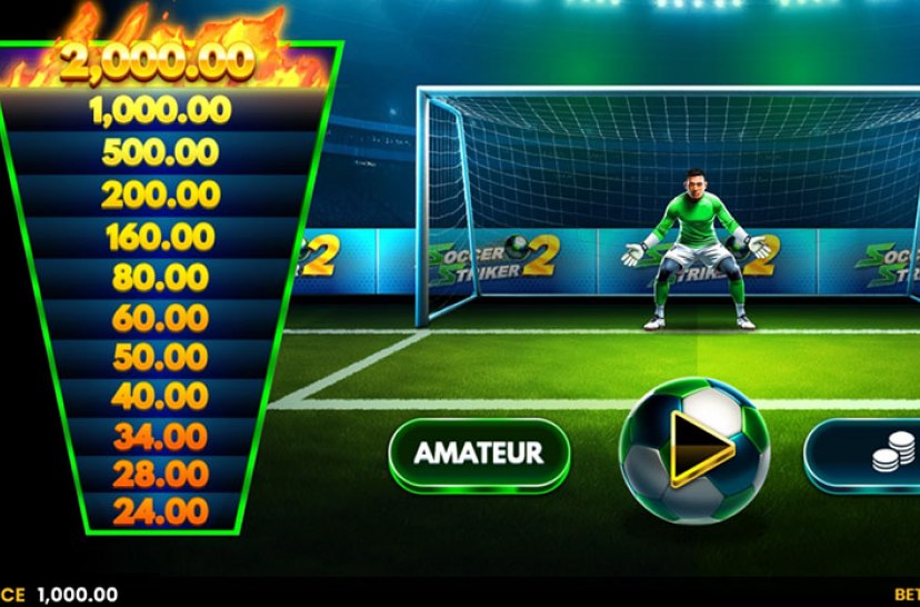 "Soccer Striker 2" presenta una experiencia dinámica inspirada en los penaltis, donde cada acierto permite avanzar en una escalera de premios. El jugador decide entre retirar ganancias o arriesgar para conseguir recompensas mayores en una dinámica interactiva y emocionante.
